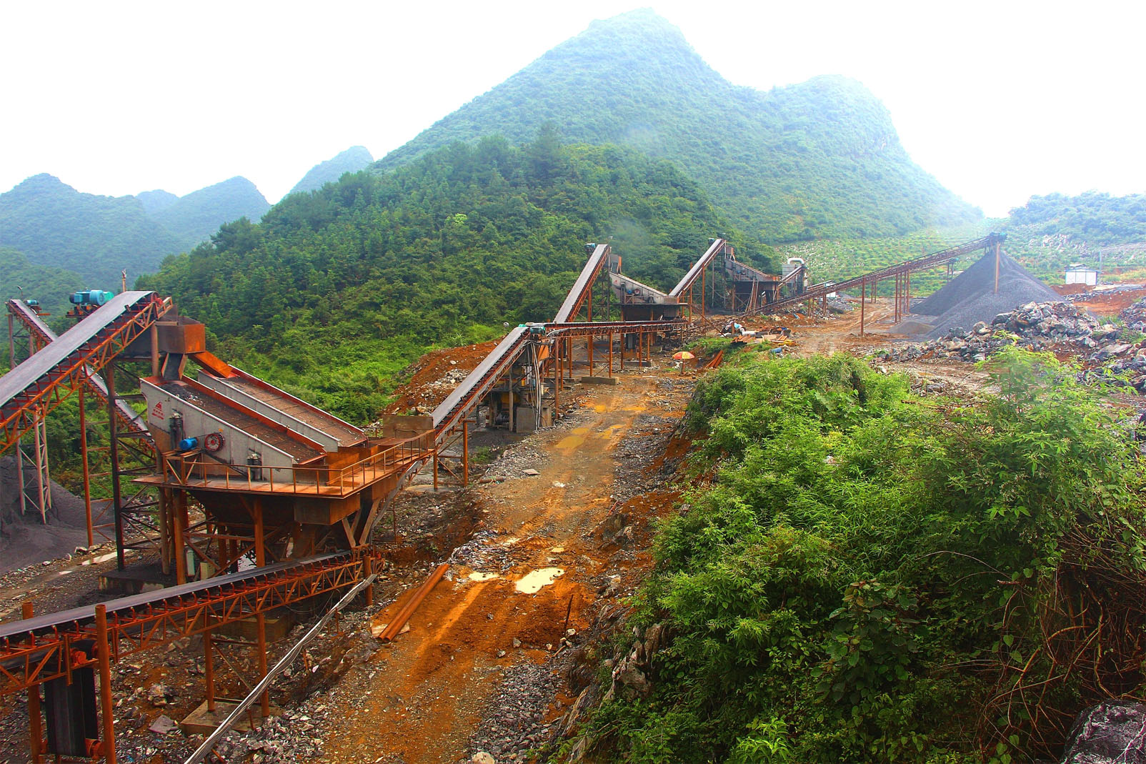 多條皮帶輸送機以及其他礦山破碎設(shè)備
