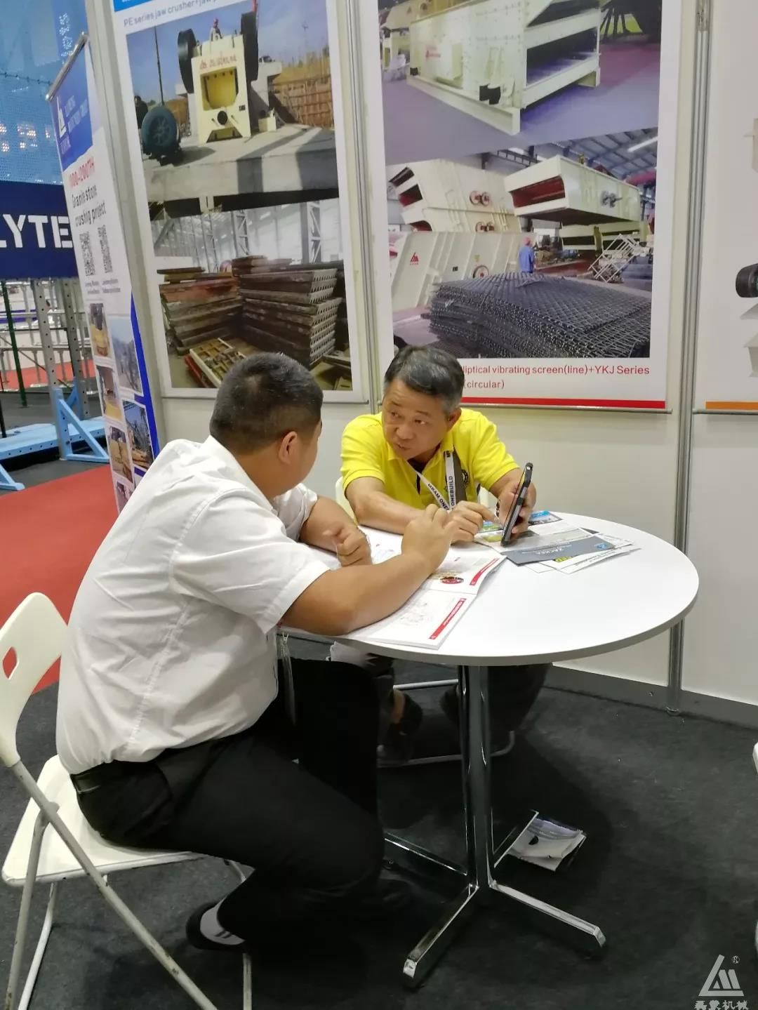 磊蒙工作人員現(xiàn)場為來賓介紹磊蒙在礦山破碎篩分領(lǐng)域的產(chǎn)品技術(shù)以及精品案例,賓主盡歡,在現(xiàn)場獲得了良好的效果。