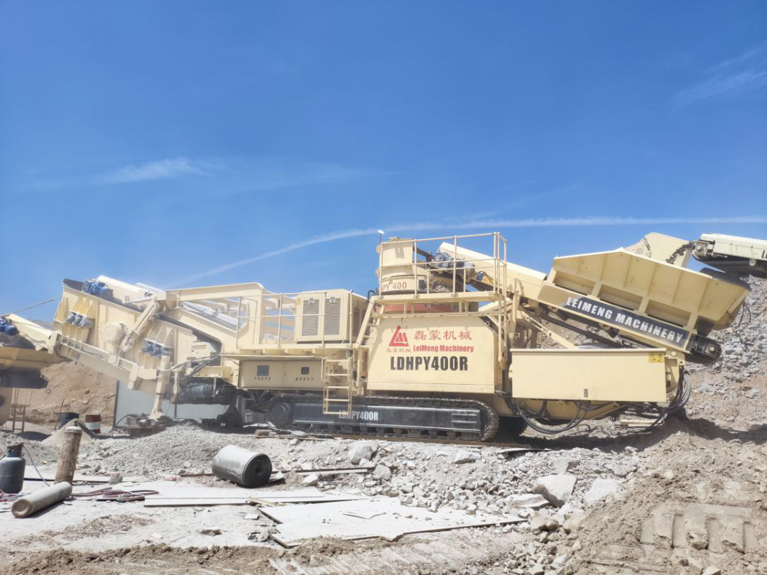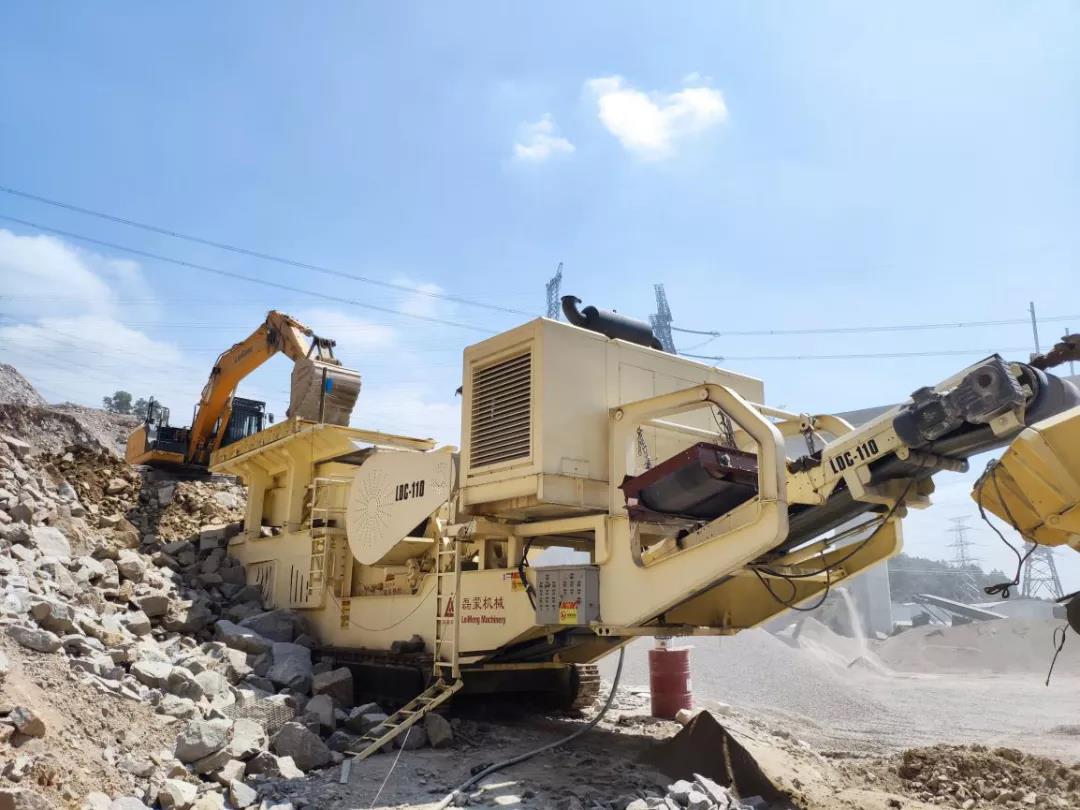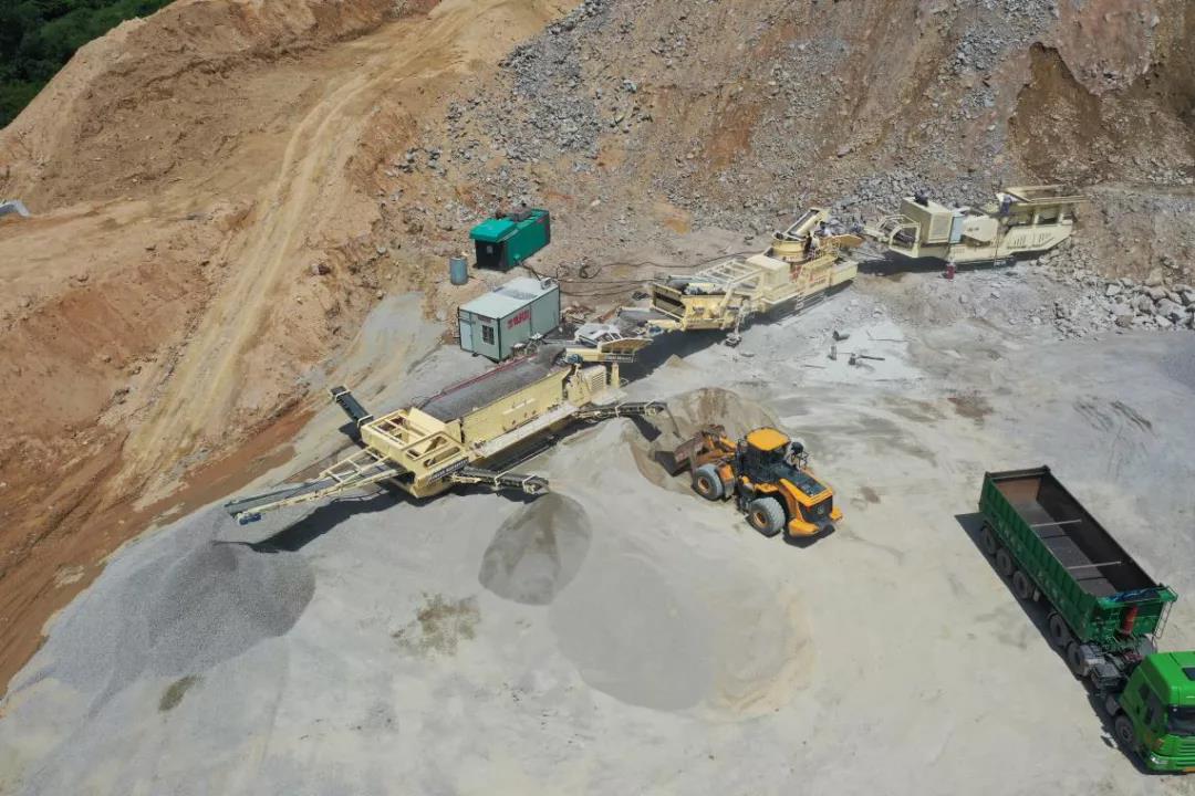 然而由于花崗巖的硬度比較高,在花崗巖礦山的綜合利用階段,架設(shè)固定式破碎處理系統(tǒng)無論從場地和基建成本等多方面因素考慮都顯得優(yōu)勢較小,而磊蒙以主機(jī)C110顎破搭配HPY圓錐機(jī)的移動(dòng)破碎站則在這種條件下顯得優(yōu)勢突出。
