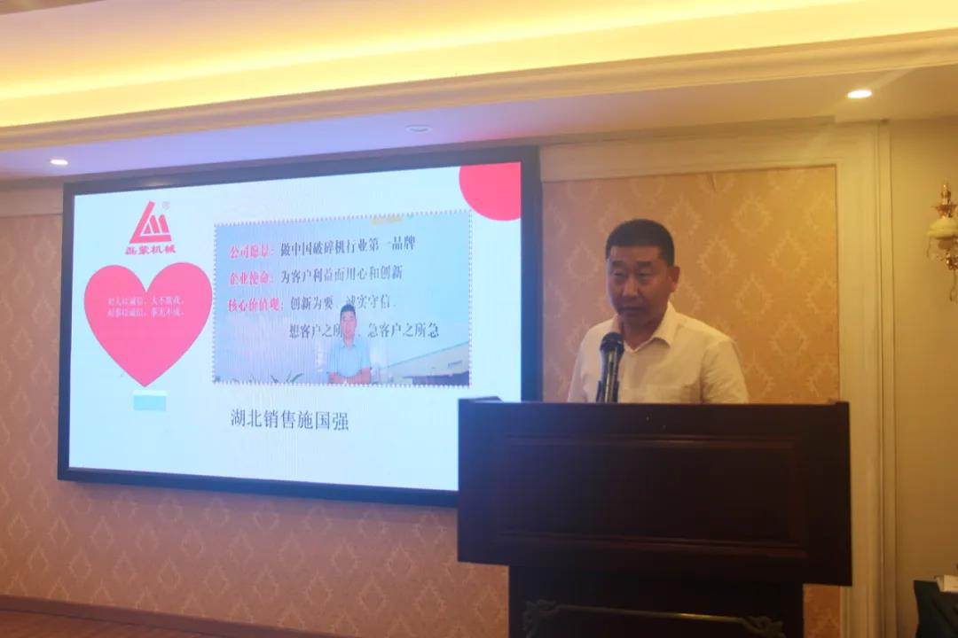 會上,張宏強董事長首先總結了2020年度磊蒙智能裝備集團第二季度的整體銷售情況。雖然今年受疫情影響較大,但還是對磊蒙銷售團隊人員工作積極性上的態(tài)度給予肯定,并以此作為延伸分析了2020年度下半年磊蒙的整體銷售形勢,以及當前礦山行業(yè)的市場發(fā)展趨勢做了具體分析;同時,磊蒙湖北生產(chǎn)基地“磊蒙智能裝備(湖北)有限公司”的即將投產(chǎn)和韶關生產(chǎn)基地“廣東磊蒙重型機械制造有限公司”二期建設項目的啟動對于下半年度磊蒙在行業(yè)內發(fā)展將有著突出的優(yōu)勢,并制定了一系列符合當前環(huán)境下的新銷售規(guī)劃、要求和指導,給所有銷售及管理人員指明了方向。