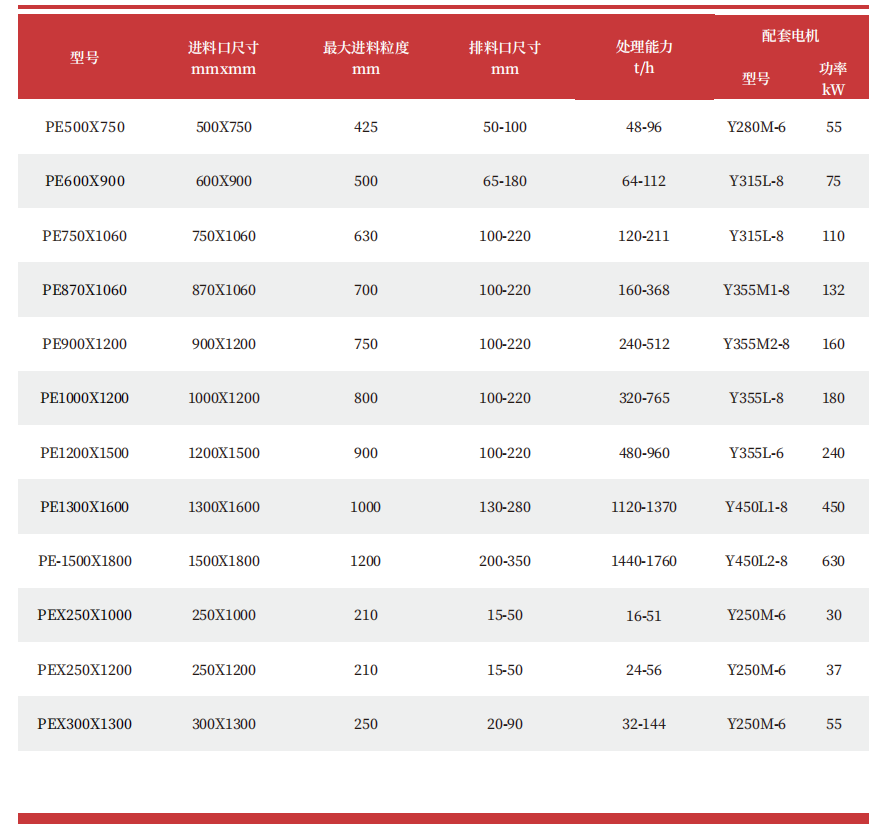 ● PE系列顎式破碎機(jī)是成套破碎生產(chǎn)線中初級(jí)破碎機(jī)設(shè)備的優(yōu)良選擇。